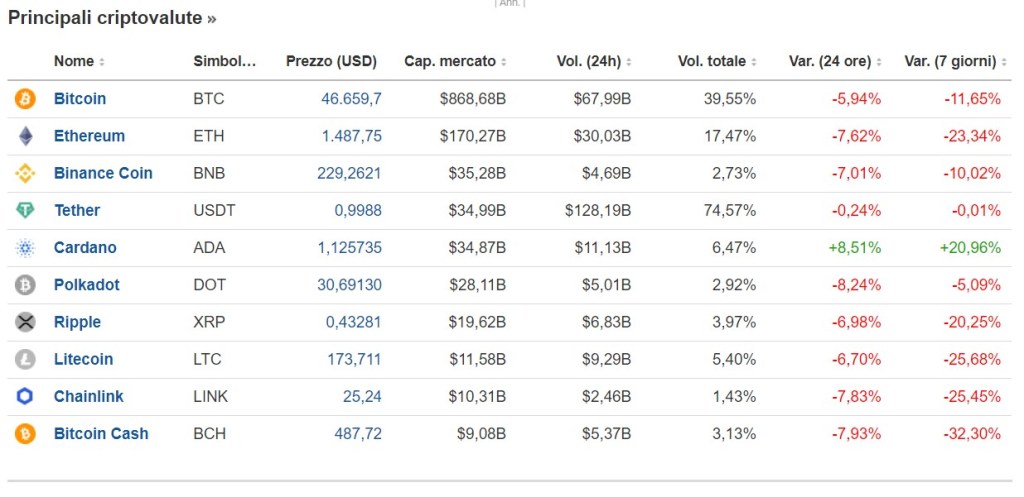 Ancor più complesso è spiegare perché Cardano guadagni il 20% in sette giorni, e il Bitcoin perda l’11%.
